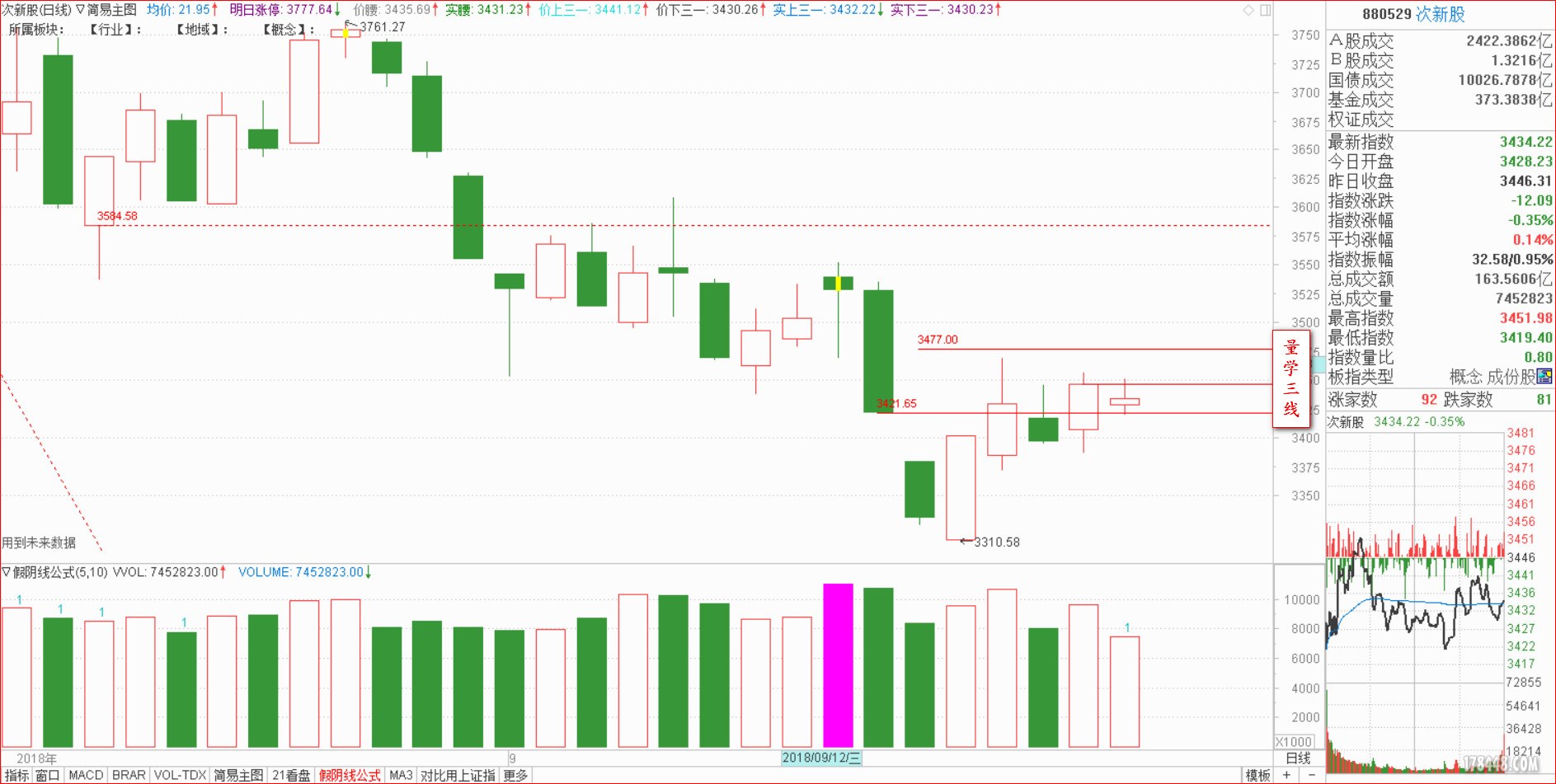 白马密探在收评《大阳喜迎中秋节,主攻行情已展开》发表后,有量友留言:“展开不了,上周五最后一涨,港股今天大跌了,把上周五大涨全部抹掉了”。于是我马上将此留言置顶并回复如下:“短期调整不代表行情就结束了!主攻行情展开不代表只涨不跌!”感谢这位量友的留言,我也怕有些朋友看到我的标题就简单地以为短期大盘将继续上攻。 其实,今日大盘调整非常正常!细心的朋友会发现我在收评《大阳喜迎中秋节,主攻行情已展开》的上证指数配图上画了两条太极线,一条是0619-0724阴阳实顶太极线和0918-0924大阳实底太极线。今天大盘就在两根太极线的怀抱里震荡,尤如一个婴儿躺在母亲的怀抱里。也预示着我们当前的A股如初生的婴儿,还很脆弱,需要大家保护才能够健康成长。 量学四维稳赢操盘体系: 一、大盘方向 当前大盘的关键矛盾在0802高量大阴和0921高量大阳上!面临0802高量大阴的压力,今日大盘选择强势调整。预计将在0921的大阳怀抱里横盘震荡一段时间再向上进攻,也就是围绕0921大阳进行现场直憋。 0926盘前三线:2768-2781-2794(2797)点。上涨不过上线则高抛,下跌不破下线再低吸。 二、热点动态 近期行情特点就是热点轮动很快,缺乏连续性。但是主要是在基建、大金融、石油、贸易战相关概念之间轮动。 今日重点在猪肉、农林牧渔、航空和石油等贸易战相关概念。而次新开板、房地产、日用化工和银行等影响人气和领跌大盘。 三、涨停趋势 今日涨停22只,仍然为凹底淘金和回马枪为主。金财互联为典型的代表,即有凹底淘金战法,又有回马枪战法,还有涨停板战法,再加上谷底线战法。 四、紧跟强者 昨日点评的合力科技连续涨停,而五洲新春没有收在涨停,原因就在前置基因上。合力科技左侧压力明显消化和减小,而五洲新春左侧仍然有峰顶和大阴的压力需要消化。 今日涨停股只有22只,而白马密探基训班同学们太棒了,又发了26只涨停红包,三慧群量友今日进步明显也发了13只红包。 0926操盘策略:稳健者继续等待主攻行情确认后的机会;激进者继续精做个股、三号战法定进退。用好三号战法,边替领边伏击涨停是最好的选择。 白马密探量学三慧免费交流群(QQ群号696151418)继续欢迎量粉们加入,记住要实名验证,如有不便、请勿申请!感谢理解和配合!