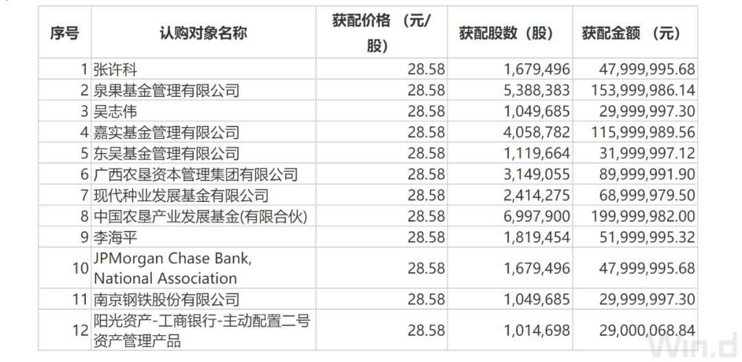 值得注意的是,王国斌创办的泉果基金现身获配名单。具体来看,泉果基金通过53个资产管理计划参与了此次定增,最终以28.58元/股获配约538.84万股,获配金额合计约为1.54亿元。